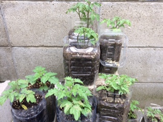北館裏にペットボトルプランターが並んでます。