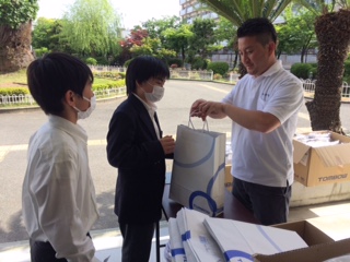 放課後、玄関前で一年生の夏服の受け渡しがありました。
