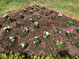 昨日、生徒会と美化委員会が植えてくれた日々草が鮮やかです。