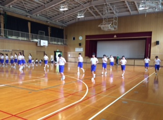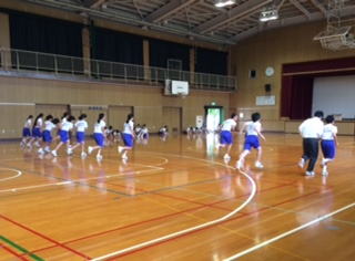 2時間目、2年生の体育授業は体育館でシャトルラン。