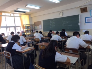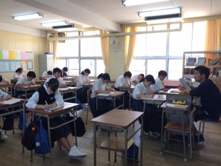 朝から、数学、英語、理科、社会、国語と続きます。みんな真剣にテストに取り組んでいました。