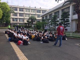 7時集合完了。参加予定者53人、全員遅れずに集合できました。
