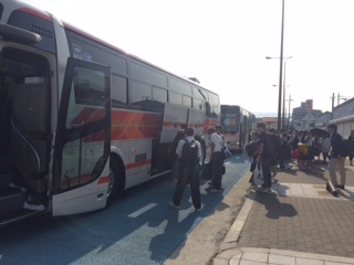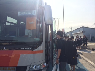 ローソン前からクラスごとにバスに乗車。7時38分に出発しました。