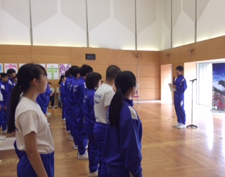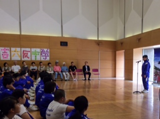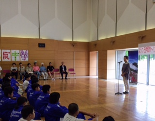 伊那市の代表の方や校長、民家の代表の方のあいさつのあと、Mさんからお礼の言葉を述べました。