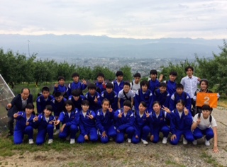 2組の記念写真。 背後の山並みは中央アルプスです。