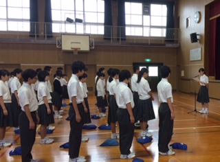 3年生が修学旅行の代休なので、1・2年生のみで全校集会を行いました。司会・進行も2年生です。緊張しながらも頑張ってくれました。
