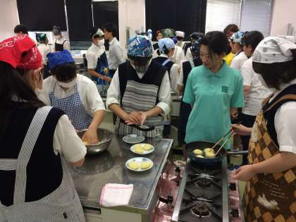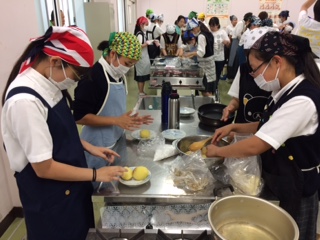 15日(金)の午後、3年生全員で長野県の郷土料理「いももち」作りに挑戦しました。民泊先の班に分かれての調理実習です。