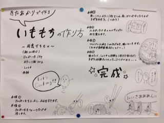 材料は、修学旅行の民泊先の「われもこう」のお父さんから大量にお土産にいただいた自慢のじゃがいも「きたあかり」。レシピは「われもこう」にお世話になった生徒がばっちりと。