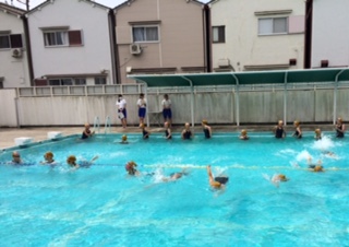 入水時の水温は24.6度とやや低めでしたが、プールサイドは夏を思わせる暑さで、みんな元気よく気持ち良さそうに泳いでいました。