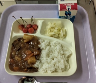 今日の給食は生徒に大人気のハヤシライス。ビーフたっぷりで美味しかったです。