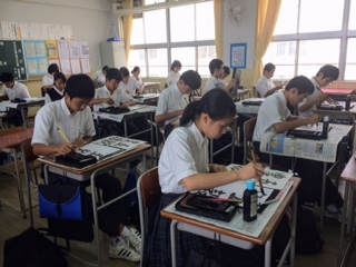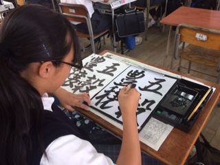 「五穀豊穣」ちょっと難しい字ですが、3年生なので少し崩した草書のお手本に挑戦です。