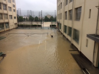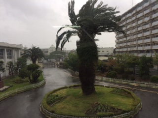 事務室と1・2年生の教室の窓ガラスが風圧のせいか割れてしまいました。
