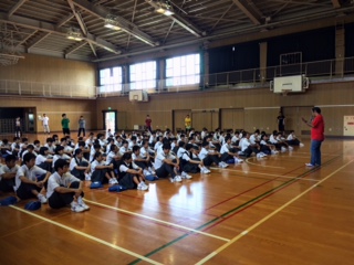 1年生は教室の状況が悪いので、今日は音楽室で授業を行います。