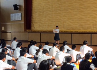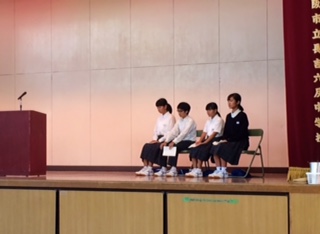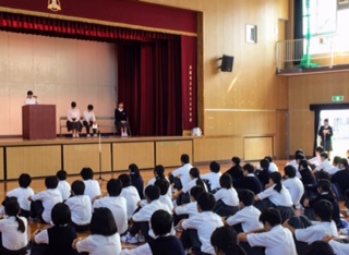 体育館での立会い演説会では、元気なあいさつのできる学校、活気のある学校づくりのため、先頭に立って頑張るなどの抱負を語ってくれました。