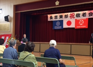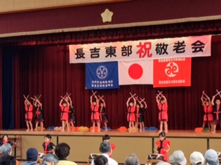 7日(日)、暑さ対策のため時期を遅らせた長吉東部連合の敬老会が、長吉東小学校で開催されました。