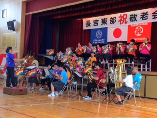 「笑点のテーマ」「やっぱ好きやねん」「吉本新喜劇のテーマ」、アンコールの「八木節ロック」と敬老会メニューで熱演しました。