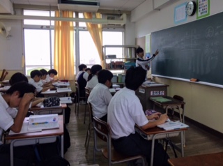 3年1組は国語の授業。古文の単元で、長歌、反歌、かかり結び・・・。ちょっととっつきにくく苦手な人が多いようです。