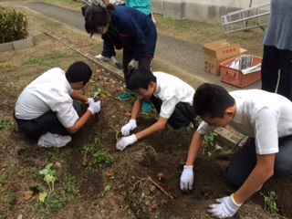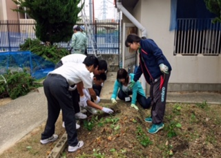 元気アップ本部のコーディネーターさんと生徒のボランティアとの共同作業。