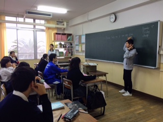 今日の2年生の英語の授業はC-NETのジョマル先生とのTTです。