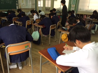 授業の中身は、アルファベットの発音と大文字、小文字の筆記練習です。中学校の英語授業の基本ですね。大きな声で発音ができていました。