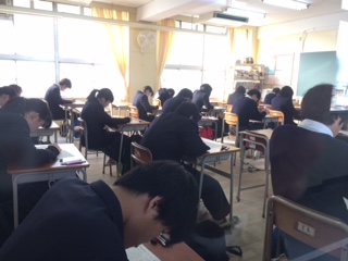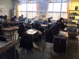 今日は、社会と音楽の二教科。学年末成績に影響するテストとあって、いつも以上に真剣に取り組んでいました。