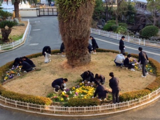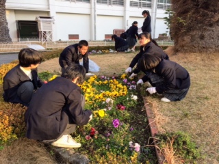 生徒議会の後、生徒会役員と委員長たちがフェニックス花壇などの草抜きをしてくれました。