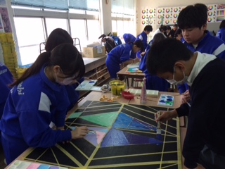 マスキングが終われば、自由な発想で色を塗っていきます。