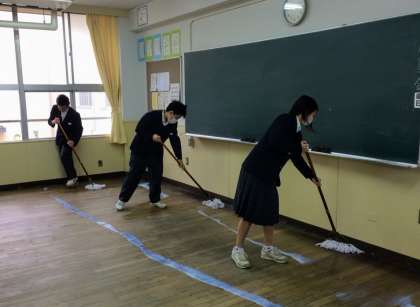 私立高校専願等で進路が決まっている生徒たちで、教室の大掃除、ワックスがけをしてくれました。