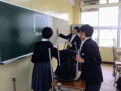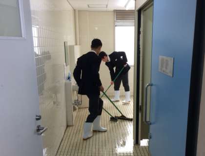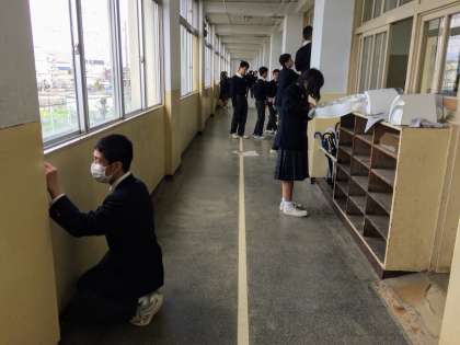 卒業式まであと2日。一年間お世話になった教室だけでなく、学年フロアの廊下やトイレもきれいにします。