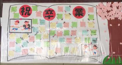 1・2年の生徒議会のメンバーと全教職員が、卒業生にはなむけの言葉やイラストを書いています。