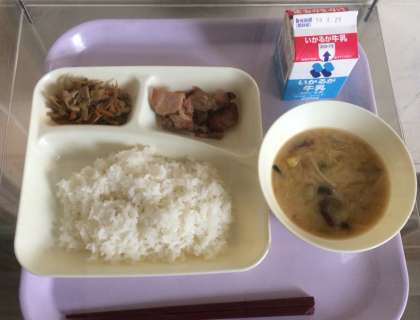 おかずは、鶏肉の照り焼き、さつまいものみそ汁、きんぴらゴボウでした。