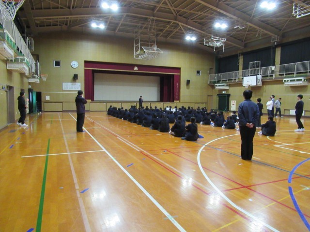 全校集会では、学校での心構えやルールについてのお話がありました。ルールは皆さんがより良い学校生活を送るためのものです。意識して行動しましょう。