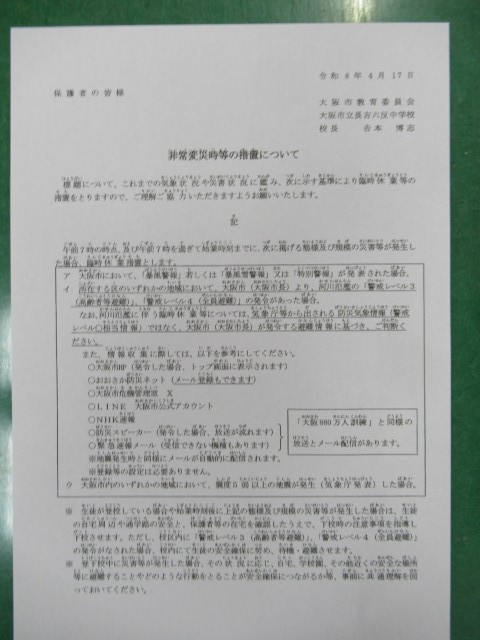 【長吉六反中】非常変災時等の措置について