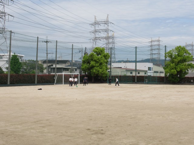 昼休みのグランドの様子です。グラウンドでは、ボールを使って遊んでいます。