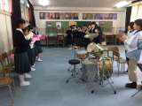 2限目の授業です。 2年1組は音楽室で合唱です。 1年1・2組は合同で体育館で集...
