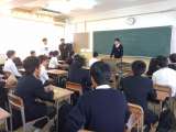 25日(火)朝、定例の全校集会を行いました。 生徒会の連絡の後、校長先生のお話で...