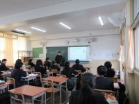 本日6限に体育館で、平野警察署の方を講師に招いて、「交通安全教室」を行いました。 横断歩道の渡り方、自転車の安全利用、危険予測などを学び、交通事故の防止に努めます。