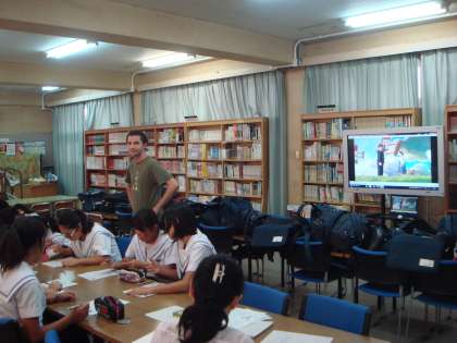 図書室で、C−NETのジェイソン先生と英語を話しました。