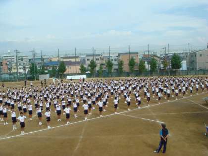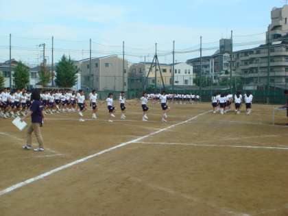今日は、6限に運動会の全体練習を行いました。入場行進から、開会式がはじまり、競技の1番目の準備体操を全体で練習しました。そのあと、閉会式の練習をしました。写真上は、行進の様子を写した写真です。手や足をしっかり上げようと頑張っています。写真下は、準備体操のため、体操隊形に開いた写真です。運動会当日にご期待ください。