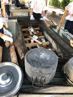 かまどの準備、鍋の準備、食材の準備などみんなそれぞれの役割をきちんとは果たしています。
