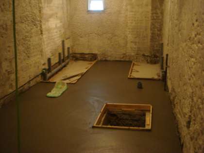 先日は、女子トイレの様子をお伝えしました。今回は、9月20日に男子トイレにコンクリートが入った様子です。左官の職人の方が来られて、きれいに仕上げをされていました。便器はまだ設置されていません。どんなトイレになるか。もう少し、お待ちください。11/8(土)の小中連携三校地域防災訓練の際には、完成している予定です。