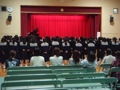 3,4限に、1年生の合唱コンクールがありました。朝から、曇り空でしたが、開始直前に、雨が降ってきて、足元の悪い中、多数の保護者の皆様にご来場いただきました。