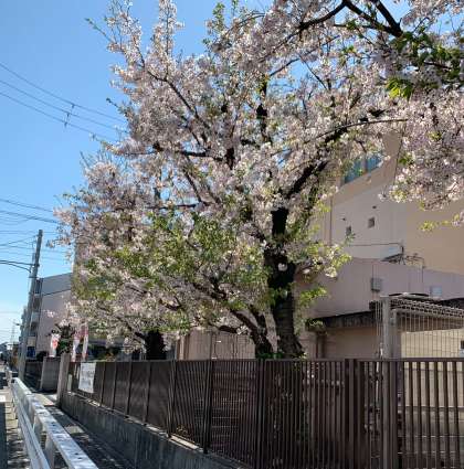 (正門横の桜がきれいに咲いています。休校が続きますが、何事も前向きに考えて、今自分ができること、やるべきことに時間を使ってください)