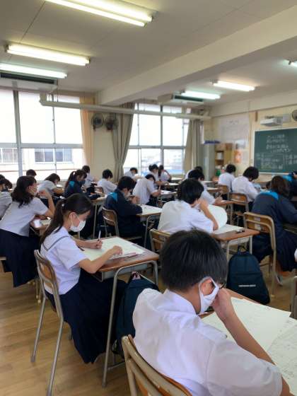 昨日もお伝えしたように、明日は3年生の土曜授業です。昼食はなしで、11:40の下校になります。サブバック登校で、テストファイル・各教科の提出物・筆記用具を忘れず持参してください。