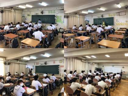 また3年生は初めて7時間目の授業が始まりました。週1回ですが、5教科にわかれ、入試の対策や勉強の仕方など学習しました。全学年このような状況だからこそ『今できること』にこだわって過ごしてほしいです。