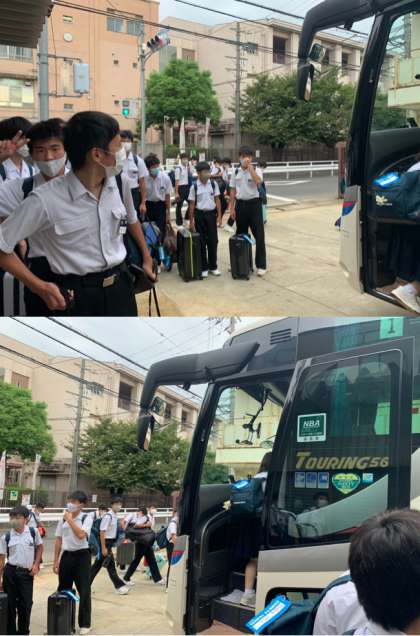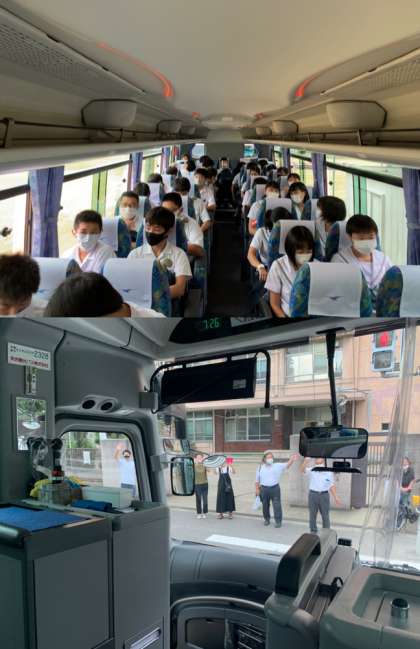 バスに乗り出発しました。早朝にもかかわらず、他学年の先生方や保護者がお見送りに来てくださいました。ありがとうございます。現在新大阪駅に向かっています。