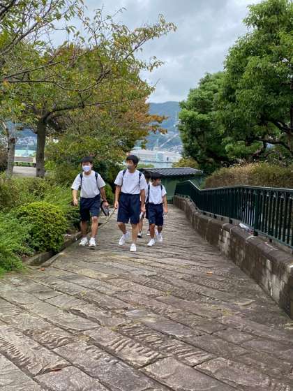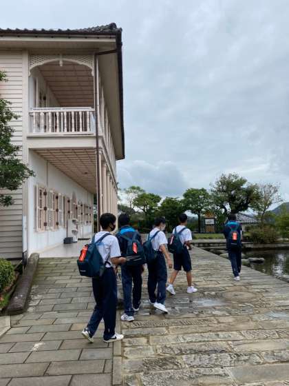 江戸時代に建築され世界遺産に登録されているグラバー園です。各班でクイズラリーを行いました。