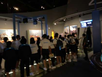 トレッキング、海釣り体験のグループは天候不良のため、雲仙で火山学習を行いました。まず雲仙岳災害記念館かまだすドームを訪れ、1991年に噴火し、大きな被害をもたらした雲仙普賢岳の災害について学びました。
