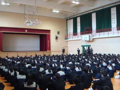 なお、始業式、前日夕方に、体育館が使用可能との連絡が入りました。保護者の緊急メールで連絡させていただいたところ、多数の生徒が体育館シューズを用意することができていました。おかげさまで、無事に始業式を終えることができました。ご協力ありがとうございました。