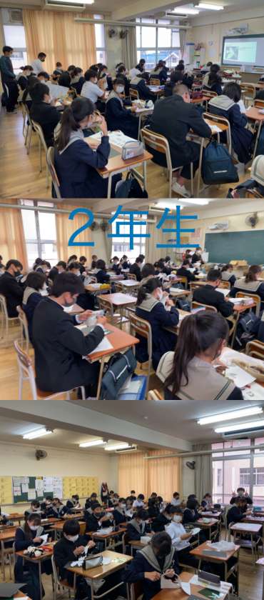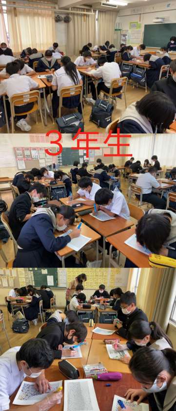 明日は通常通りの時間割です。3年生は明日も修学旅行の写真の申し込みがあるので、まだの人は忘れないようにしてください。